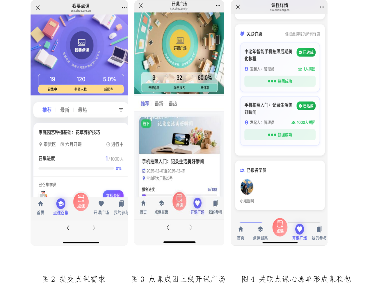 其中“点课许愿”功能构建了需求主导型课程孵化机制。市民可首先在平台上发起课程需求点单,平台对需求进行评估并持续跟踪热门需求课程动态,吸引内容创作者(包括个人、企业等多元主体)主动接单进行课程创作。课程上线时,将在开课广场向点课学习者发送提醒。以咖啡课程点课为例,市民可在平台上表达对咖啡学习的兴趣,兴趣可以丰富多样,如咖啡拉花技艺、咖啡豆选取知识、冲泡技巧等不同需求,平台会与相关专业机构和人士等共同完成课程开发。学习者可报名参加许愿成功的线下课程,课程资源也将在“一网通学”移动端学习平台上同步上线。