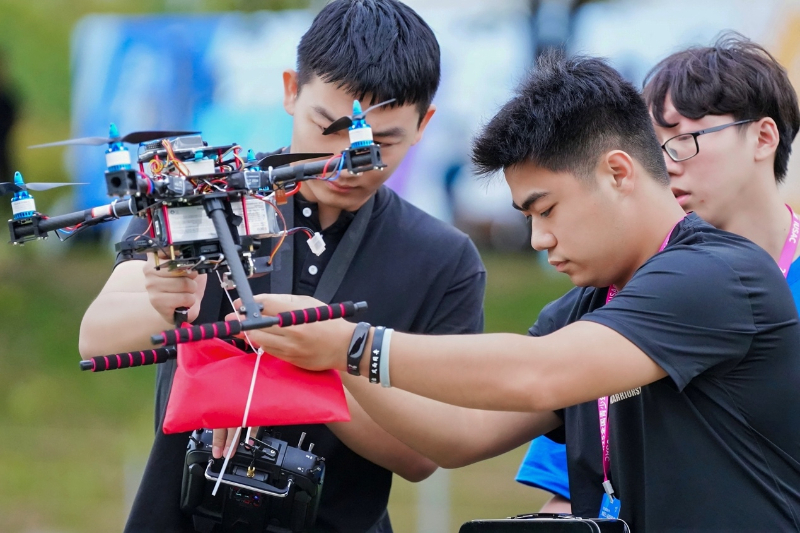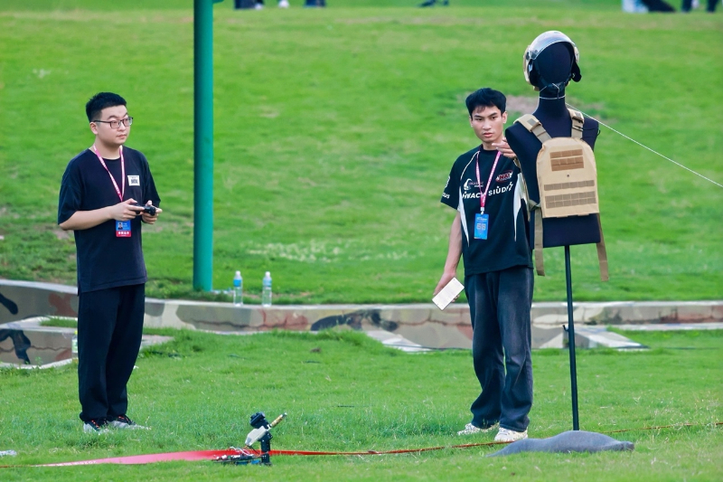 赛事设计充满创新性,除了传统无人机手动操控竞技外,诸多赛项都对比赛用机用车的自主控制功能给出较高分值,间接促使选手在自动化方面着力。赛项设置也侧重实用性,比如光纤遥控飞行挑战赛,对选手现场处置光纤缠绕与折断“特情”有专门的考验,这与实战中光纤无人机因断线而失控的情况紧密相连。赛场设置同样贴近实战,陆空联合保障运输赛中,参赛无人车须在无人机侦察、空运协助下完成任务,而且“不能走回头路”,一步踏错,就将失去胜算;地面反无人机群挑战赛,跳出过去“敌我不分”的全面电子压制模式,要求选手用水弹来模拟摧毁来袭无人机,而且限制最大载弹量,对参赛队的精确打击提出更高要求,符合实战中“用最少弹药拦截最多目标”的情况。