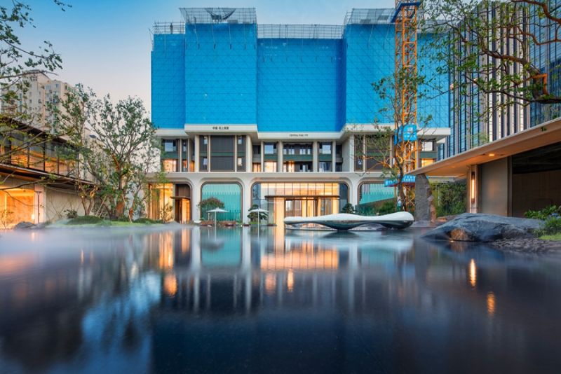 项目打造了“金镶玉制”陶板立面、最高约10米全域架空、约3000平方米下沉庭院会所、连续约12米转角无柱化设计、地下中央车站酒店式归家设计等,全方位回应当代人的居住向往。
