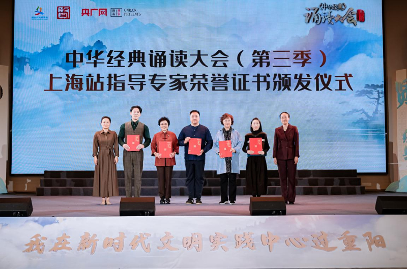 活动现场还举行了获奖选手表彰与指导专家荣誉证书颁发仪式。自中华经典诵读大会(第三季)上海站启动以来,为确保评选专业公正,活动聘请了丁建华、赵静、孙逊、张鲁一、季芳芳等业内专家组成专家团,从诵读的技巧、情感的表达、对经典的理解等多个维度进行指导。