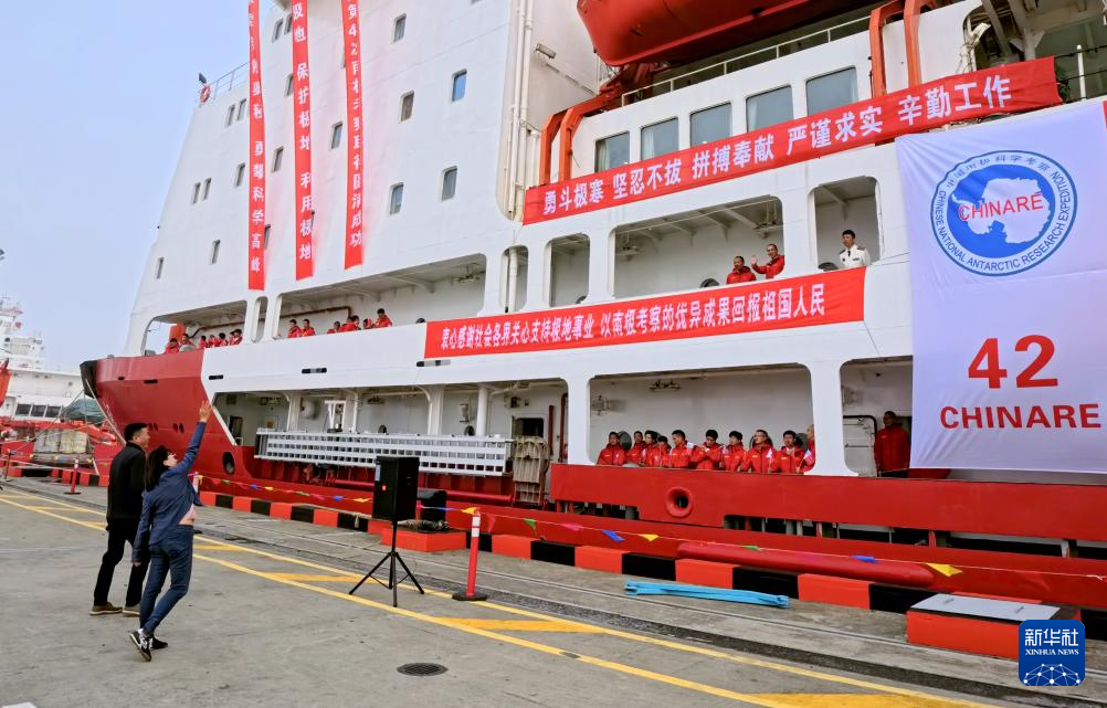 11月1日,送行的亲朋好友与船上的科考队员挥手告别。