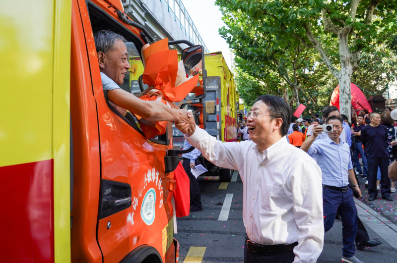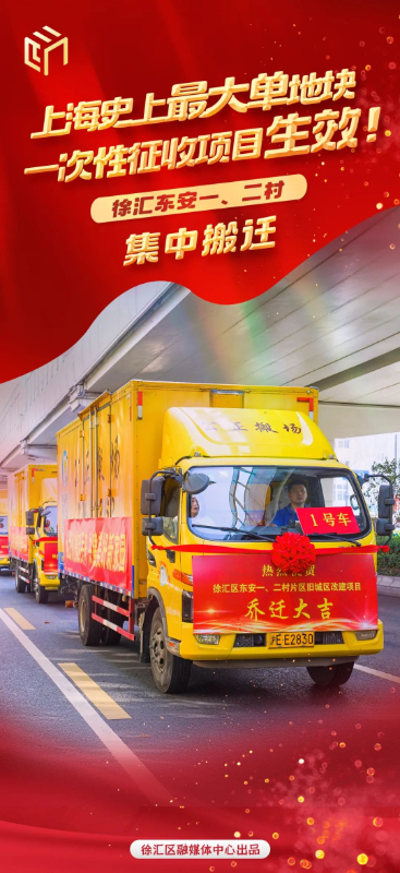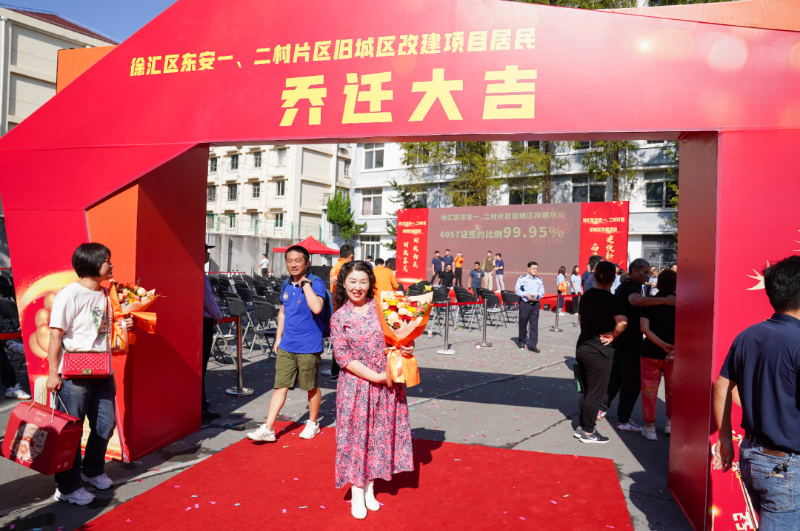 搬迁仪式现场,随着徐汇区王华区长宣布东安一、二村片区旧改项目集中搬迁仪式正式启动,满载喜悦和希望的搬场车依次发车,市、区领导沿路纷纷向搬离东安的居民群众送上鲜花表示诚挚祝愿。“搬离旧舍虽难舍,喜焕新颜绽欢颜”。在欢快的锣鼓齐鸣声中,在难舍的挥手告别中,东安一、二村居民告别了数十载的旧居旧梦,兴高采烈地迈向崭新明亮的新家园,开启美好生活新篇章。