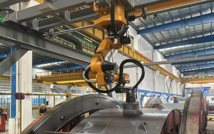 此外,在智能建造方面,南通海洋公司通过“点-线-面-体”路径,以设备为点、串成产线、融通数据、构建生态,已在公司基地推广应用。在物流与仓储中引入无人地磅、电子锁和动态调度系统,打通SCM、WMS与MES,实现供应链高效协同。人机协作同样领先,清模、喷涂、抹面等环节广泛应用智能化操作机器人,人工减少60%,作业效率提升30%,显著改善作业环境、降低安全风险。
