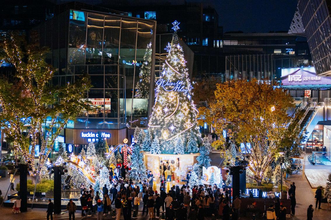 虹桥天街的天街里街区化身为一座充满奇思妙想的冬日幻境,高达15米的璀璨许愿树成为整个街区的焦点,在众人期待中盛大亮灯。这棵巨树不仅是视觉的核心,其荫庇之下更巧妙融入了一间独具格调的生活方式集合店“止痒礼物商店”,将美好祈愿与日常烟火无缝连接。环绕其周的是近千平方米、如星罗棋布般的小型圣诞树矩阵,其间点缀着灵动的旋转机械艺术装置,它们共同构成了一片迷人的“都市奇幻森林”,这一幕绮丽场景,不仅点亮了街区夜色,更以沉浸式体验激活夜间消费,为虹桥商务区的夜经济与街区活力注入温暖光芒。