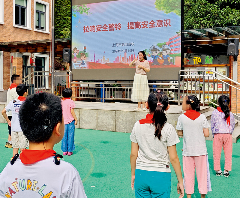 在上海市第四聋校大力支持下,她为同学们加开了一门“必修课”——每月开展一次消防逃生演练,时长约30分钟,全体师生统一参与,包括演练、点评、各班主任练后再教育等环节。在“消防宣传日”等重要节点或针对校车着火等特定场景,学校还会开展专项消防演练。
