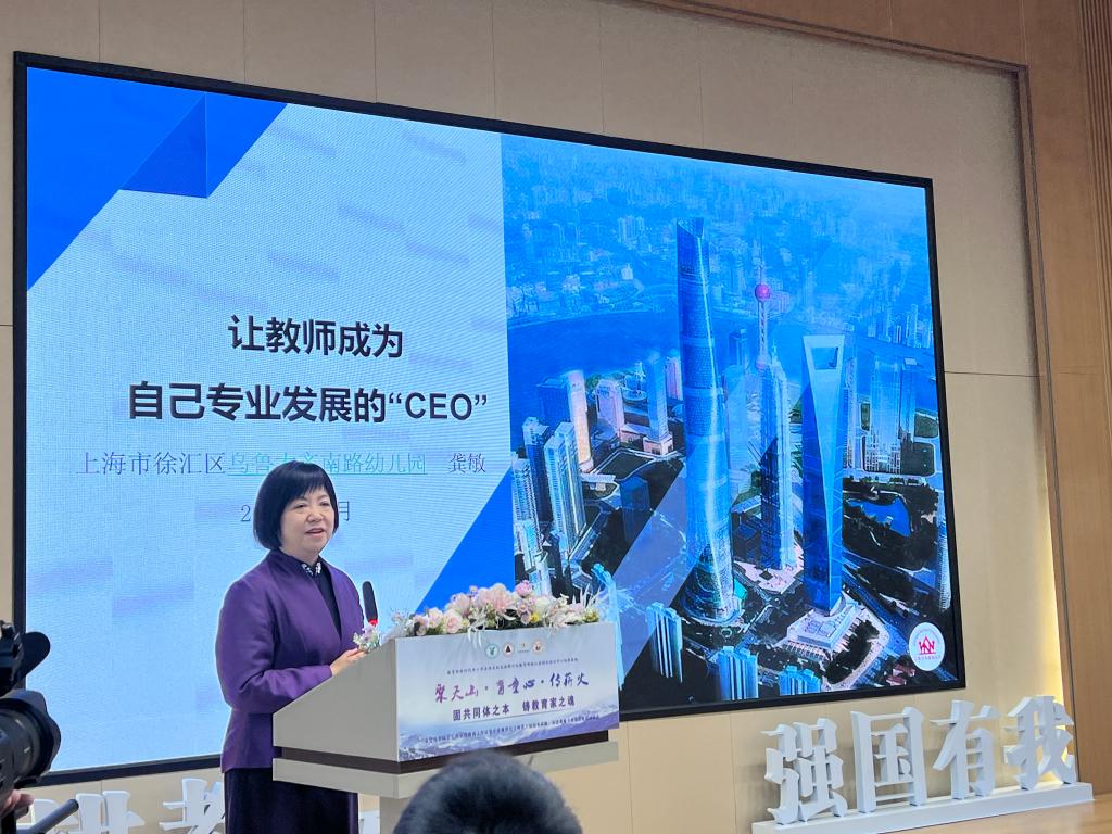 11月20日至23日,龚敏作为“双名计划”教育部幼儿园园长培训中心培养基地的实践导师,受邀出席了在当地阜康市举办的全国学前教育盛会,与全国各地幼教专家、园长及一线工作者齐聚,围绕学前教育高质量发展交流探讨。大会现场,龚敏以《让教师成为自己专业发展的“CEO”》为题作报告,系统分享了乌南幼儿园在助推教师成长中的创新实践,引发了现场幼教同仁的广泛共鸣。