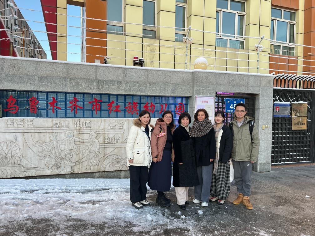 随后,乌南幼儿园教师团队还奔赴乌鲁木齐市红旗幼儿园,与结对伙伴温暖相聚。早在2019年,乌南幼儿园与红旗幼儿园的情谊便已开启。两园互访频繁,情谊深厚,红旗幼儿园教师团队曾赴乌南幼儿园跟岗学习,近距离感受乌南幼儿园“中国心,世界情”的育人目标。