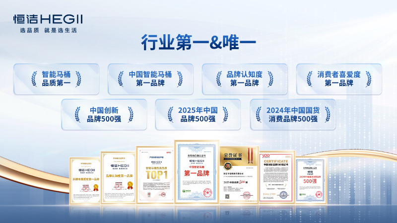 在这一趋势下,一批民族卫浴品牌通过创新与品质提升迅速崛起。其中,恒洁卫浴作为行业领军企业,凭借持续系统化创新,逐步实现多维度领跑:两年内四次登上“中国品牌500强”卫浴榜首,同时获评“品牌认知度第一品牌”和“消费者喜爱度第一品牌”,并多次经权威第三方确认为“中国智能马桶第一品牌”,更于2025年11月荣获沸腾质量数据颁发的“智能马桶品类品质TOP1””的品质认证,以多维度领先第一,成为消费者首选国货卫浴品牌之一。其背后,是以技术创新驱动的“飞轮效应”,通过研发、产品、用户体验、品牌与责任合力,形成闭环增长逻辑。恒洁的路径,正为中国制造业的高质量转型提供一份可鉴样本。
