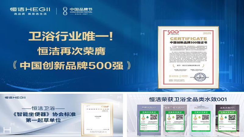 通过构建全方位的服务体系和创新的场景体验,恒洁展现了从制造到服务的全链路用户思维,凭借在服务领域的卓越表现,恒洁先后入选亚洲品牌集团(Asiabrand)发布的“2025中国品牌500强”与艾媒咨询(iiMediaResearch)发布的“2024中国国货消费品牌500强”榜单,基于产品质量、服务水平等多项维度综合考量,并在两大评选中均位列行业首位。