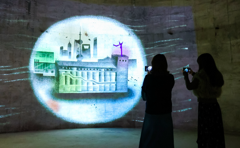 步入艺术展,眼前所见的是历史影像构筑的“记忆长廊”,泛黄的老照片定格了码头工人装卸粮食、筒仓运转的繁忙场景,无声诉说着民生码头作为航运枢纽的辉煌过往;纪实短片《筒仓记忆》中,曾经的筒仓管理员深情讲述“与粮为伴”的岁月,一句“期待它焕发新的青春”的质朴期盼,让人动容。