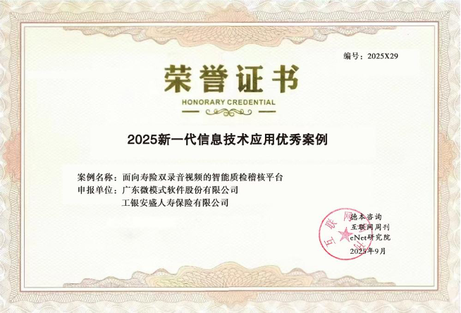 近日,由互联网周刊、德本咨询、eNet研究院联合主办的“2025年新一代技术应用优秀案例”重磅揭晓。工银安盛人寿研发的“银保双录智能质检系统”,凭借其创新性地解决了传统质检模式瓶颈的关键技术突破,成功入选优秀案例榜单,并荣获“金融科技创新奖”。