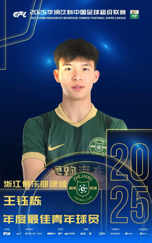 浙江队王钰栋荣膺中超最佳青年球员,这位新星以11粒进球成为本赛季中超本土射手王,他的速度出众、技术精湛,多次在关键比赛中发挥重要作用。重庆铜梁龙球员张志雄获得中甲最佳青年球员,作为一名中场球员,他在攻防两端都展现出重要作用。山东泰山B队的彭啸夺得中乙最佳青年球员,作为一名防守型球员,他能适应场上多个位置,本赛季不仅屡屡做出关键防守,还多次破门;今年下半年他被上调到一线队,并在中超赛场上坐稳主力位置。