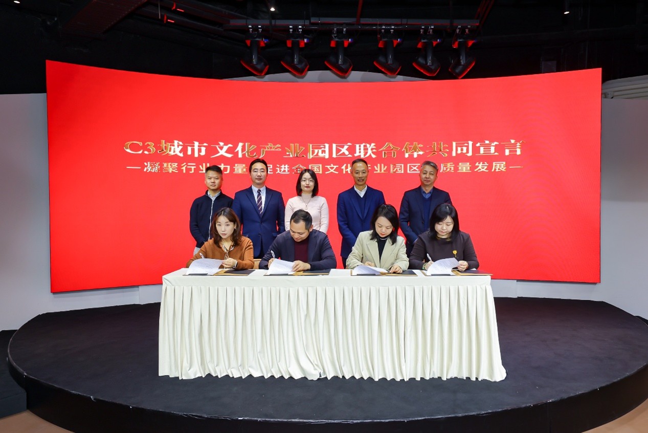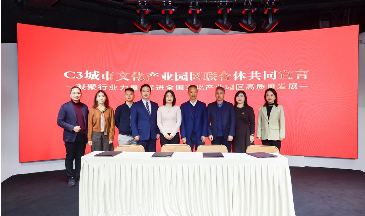 大会现场举行了《C3城市文化产业园区联合体共同宣言》的签署仪式,标志着这一跨区域协作平台迈入协同发展的新阶段。北京、深圳、广州、上海四地园区协会秘书长作为代表共同签署宣言,国家及市、区相关主管部门领导共同见证。该宣言明确了联合体未来发展的八大行动纲领:一、坚守初心,服务国家战略;二、构建协同生态,推动区域联动;三、深化创新融合,激发产业动能;四、强化行业自律,共建标准体系;五、培育专业人才,夯实发展根基;六、打造品牌活动,扩大行业影响;七、开放包容发展,凝聚多元力量;八、践行社会责任,赋能美好生活。
