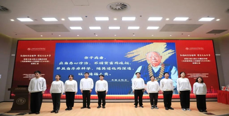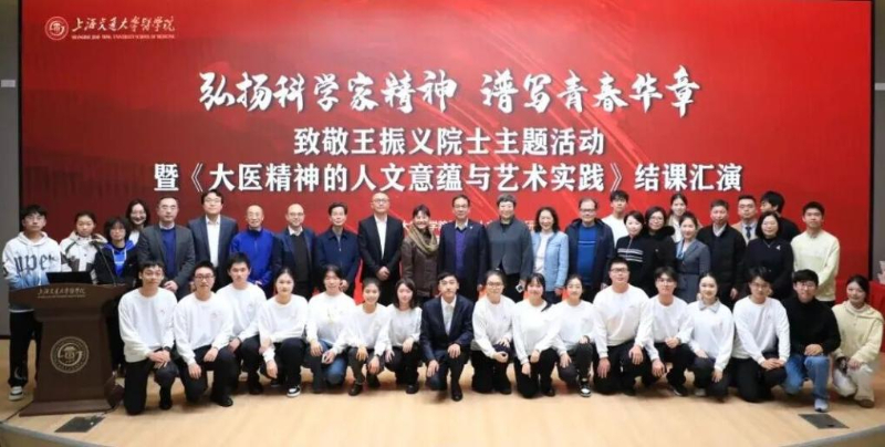 新华网上海12月22日电(记者袁全)当科学与人文相遇,让精神在艺术中新生。近日,一场以“弘扬科学家精神 谱写青春华章”为主题的“大思政课”活动在上海交通大学医学院浦东校区举行。活动集中展示了思政人文课程《大医精神的人文意蕴与艺术实践》的结课成果,同期举行了《清贫的牡丹:王振义》新书发布及科学家精神宣讲团成立仪式,通过学术致敬与艺术展演的创新融合,让医学生们在沉浸式体验中感知和传承大医精神。
