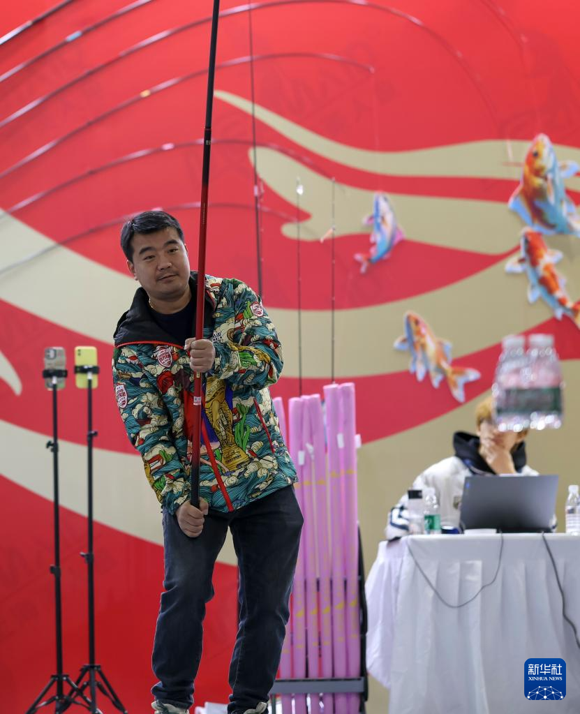 12月26日,工作人员演示使用钓具。