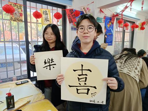 为了让文化在指尖传承,活动特别设置了“迎元旦·拓福”手工环节,在非遗老师的指导下,同学们与爷爷奶奶结成对子,共同体验古老的拓印技艺。每一张带有“福”字和生肖马图案的作品,都承载着跨越年龄的祝福与温情。