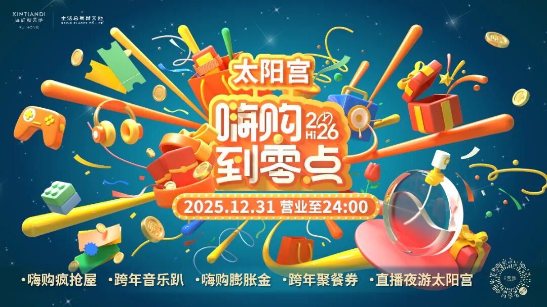 瑞虹新天地:跨年夜太阳宫嗨购到零点,音乐派对+限时折扣爽不停;新春花市+年货集齐聚百种年宵花和好物,满减福利让你一站式囤齐年味。