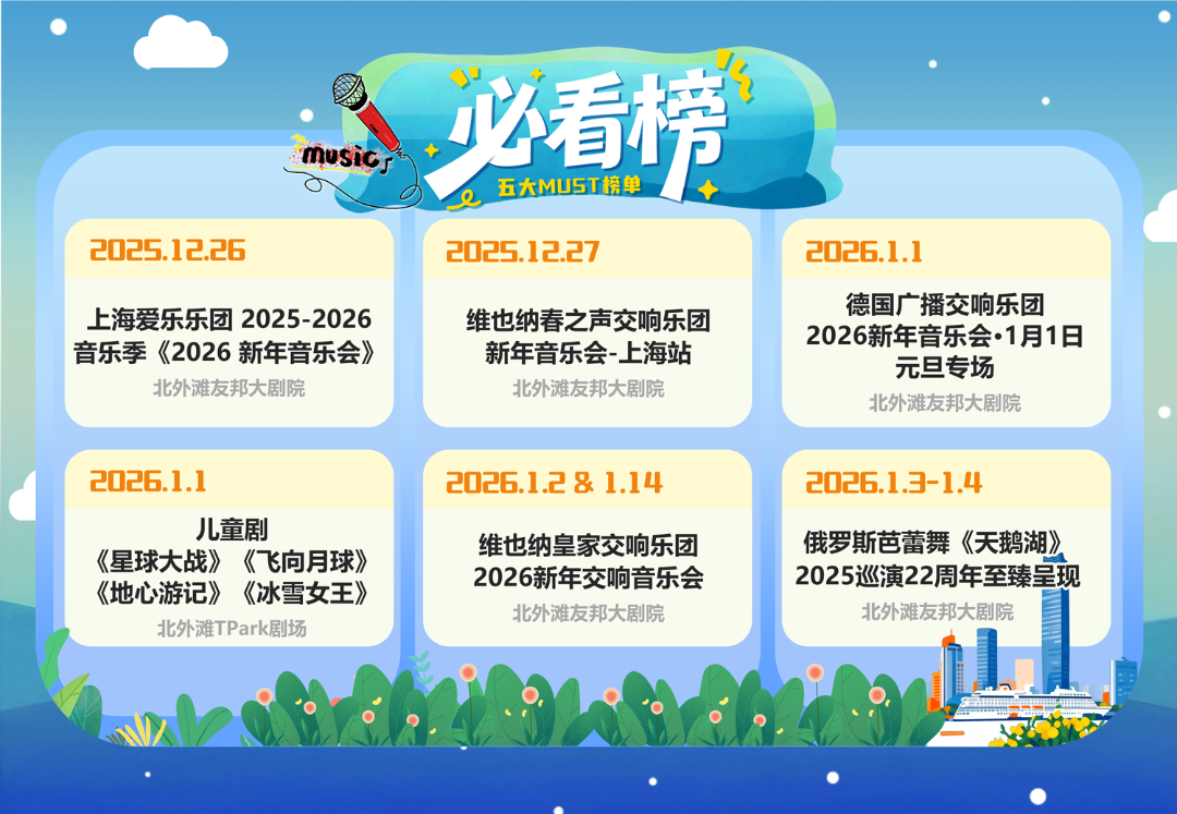 除了逛吃,虹口还备好超多文化大餐!北外滩友邦大剧院迎来德国、维也纳交响乐团新年音乐会,还有俄罗斯芭蕾舞剧《天鹅湖》,带来听觉视觉双重享受。