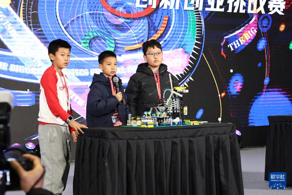 1月2日,小选手们在创新创业挑战赛舞台上介绍他们的创意编程作品。