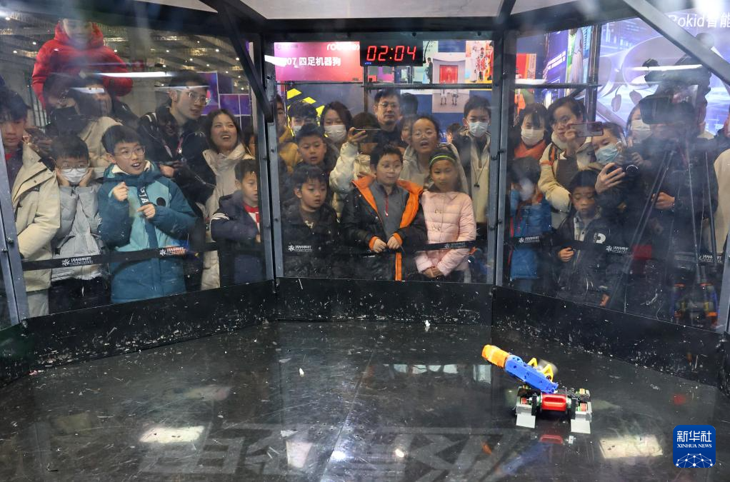 1月2日,参观者在观看机器人格斗比赛。