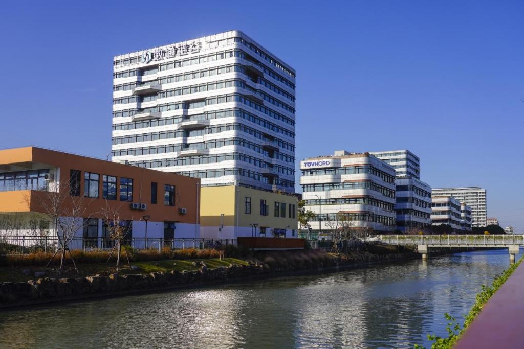 “中午在中扬湖边的咖啡厅谈业务,晚上沿着游步道散步,孩子在园区里的小学上学,上下班就是上下楼——在市北高新,工作和生活是融在一起的。”一位企业员工的描述,道出了园区“产城融合”的美好图景。