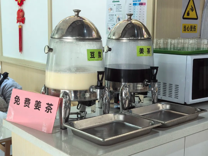 这份温暖,尤其关照在寒风中坚守岗位的户外劳动者。环卫工人、建筑工人、快递外卖员等户外劳动者无需就餐,随时可以进门倒一碗热鸡汤或姜茶,歇歇脚,取取暖。