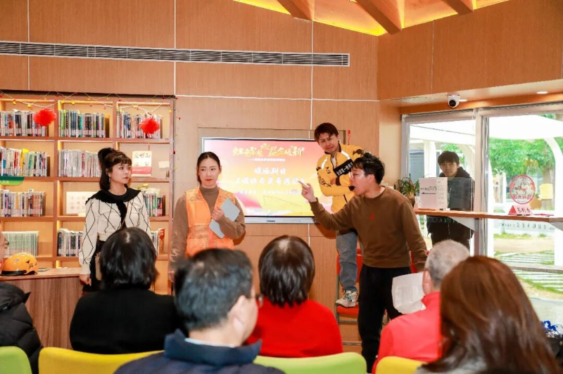 内场,初心话剧社《暖蜂友巢奇遇记》温情上演,风雨配送、深夜坚守、误解与热忱交织的场景,精准还原新就业群体日常,引发台下骑手代表强烈共鸣。社长王妍佟表示:“我本身还是暖蜂友巢•井亭商圈党群服务站的站长,对骑手们有一种特别亲切和熟悉的感觉,希望有机会能演给更多的骑手们看。”