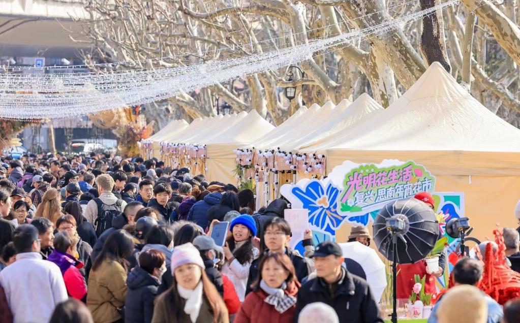 不同于传统花市单一的花卉售卖模式,本次活动创新性地把年宵花与年货市集深度融合,打造兼具“高颜值”与“烟火气”的一站式消费场景。