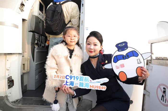 2月2日春运首日,东航国产大飞机C919开始执飞上海虹桥至珠海的定期商业航线。至此,东航14架C919飞机共执飞14城18条航线。