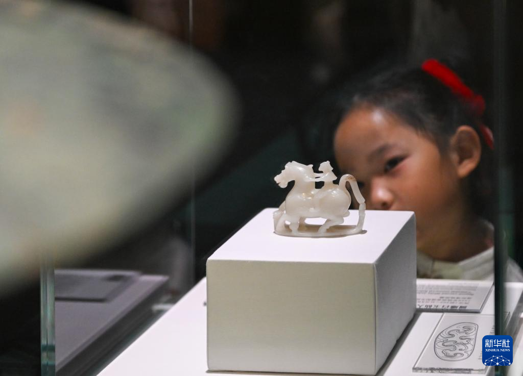 2月4日,小朋友在“春风骐骥:马年生肖展”上欣赏展品。