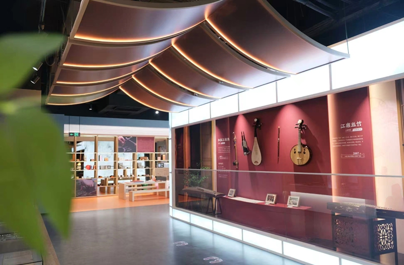 在这里,科技正为非遗注入全新的生命力。普陀区非物质文化遗产馆本馆的最大亮点,正是实现了从数字再现到AI赋能的跨越。展馆不仅运用数字孪生与VR技术,构建起跨越时空的“数字文化共同体”——720VR全景展厅,让观众得以沉浸式习练卢氏心意拳、观赏江南丝竹全息演奏或360度细览海派瓷艺《荷美》瓷缸的每一处釉色与纹样。同时,展馆更进一步引入了人工智能技术,在海派漆艺等项目的数字模拟系统中,观众可自由调漆、智能生成纹样,在虚拟创作中深度理解工艺逻辑与美学特质。科技不仅栩栩如生地重现非遗形态,更通过AI参与点亮其创造性传承与个性化创新的路径,让中华优秀传统文化在数字世界中持续进化、生动可感、触手可及。