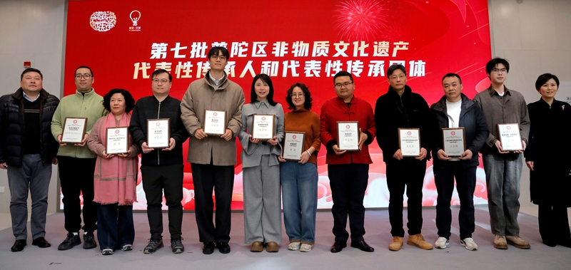 此外,现场同步举行了第七批普陀区非物质文化遗产代表性项目、传承人和传承团体颁牌仪式。此次授牌进一步壮大了普陀非遗传承队伍,完善区域非遗保护体系,也为新春非遗传播、节庆文旅活动开展储备了优质内容与核心力量。