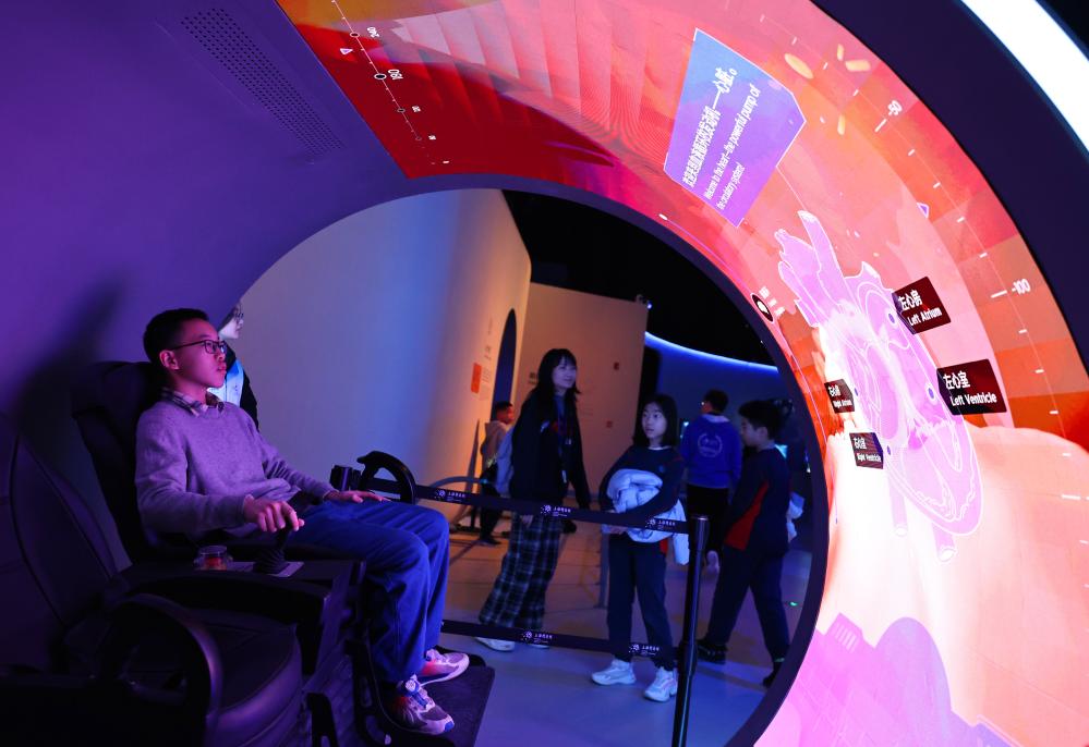在上海科技馆,人们还能看到我国科技进步的历程。“明日行者”展区聚焦人工智能和机器人技术前沿,引入国内多家科研院所、科技企业的最新科研、创新成果,将机械外骨骼、医用机器人、群智机器人等的科学原理展现在观众面前,启发观众关注科技发展的热点话题。在颇受关注的“飞行探秘”展区,人们能模拟飞机驾驶、体验跳伞,也能走进“透视大飞机”剧场,了解大国重器的研发生产过程。