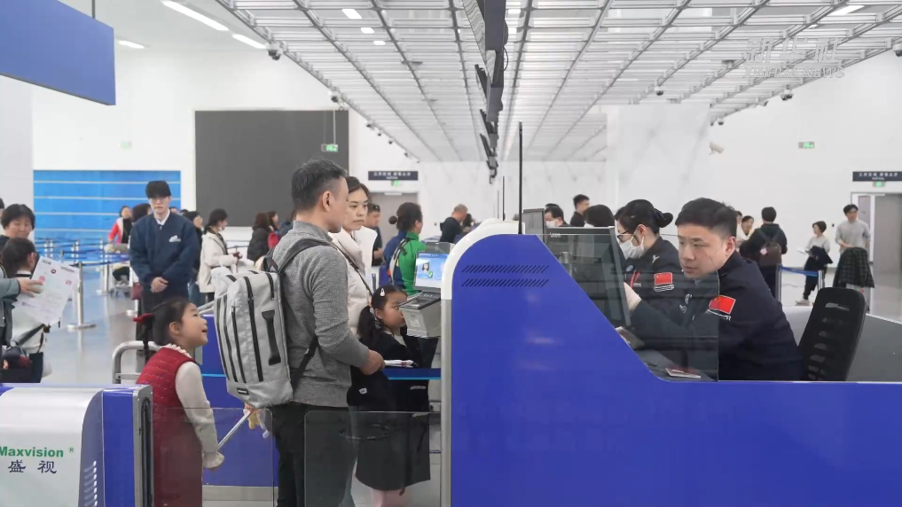 14日,上海吴淞口国际邮轮港边检查验大厅里,“海洋光谱”号邮轮的五千多名旅客陆续办理出境手续。他们启航前往韩国釜山,开启五天四晚的海上春节之旅。