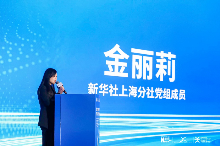 图为新华社上海分社党组成员金丽莉致辞。