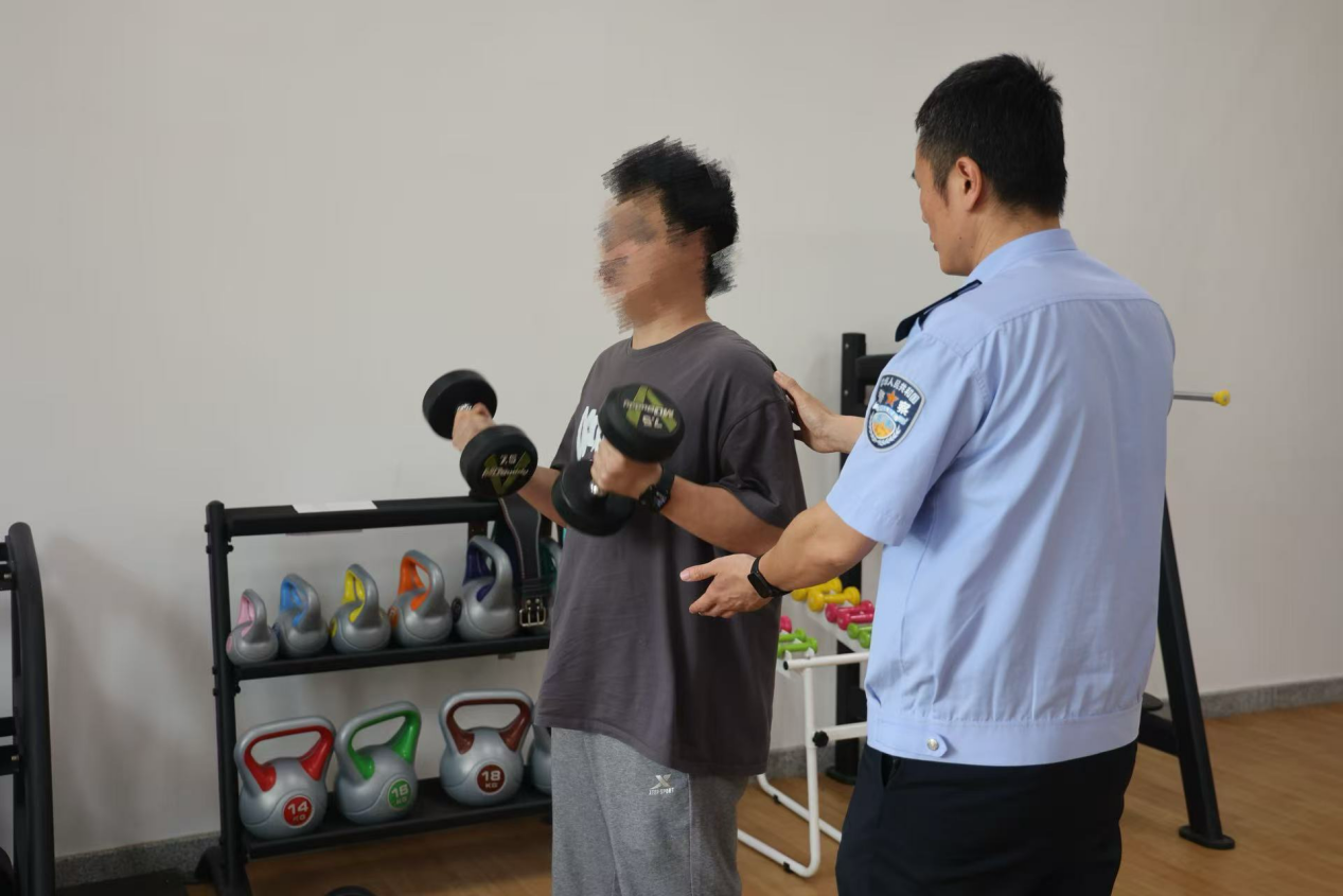 (民警对戒治对象开展运动康复指导)