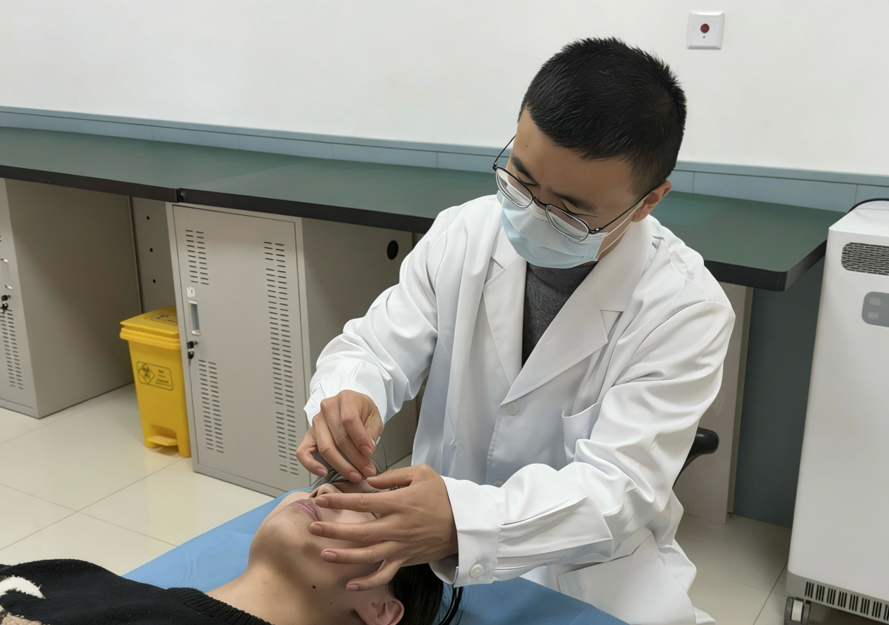 (民警医生利用中医针灸技术针对滥用“替来他明”导致视力下降的戒治对象开展治疗)