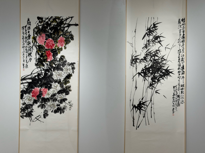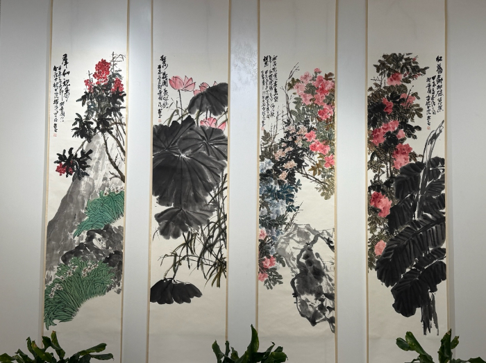 步入展厅,细观杜小荃作品。在题材选择上,杜小荃作品以梅兰竹菊、各类花卉等传统意象为基底,融入当代审美视角与人文精神,于经典物象中勾勒时代意趣;在笔墨技法上,杜小荃深汲吴昌硕“金石风骨”,以大篆笔意入画,线条苍劲老辣、墨色淋漓多变,既恪守传统法度,又尽显个人艺术性情;在意境营造上,打破程式化束缚,以笔墨传递文化传承的信仰力量,让观者在赏画之余,实现与传统艺术、与缶翁艺术精神的跨时空共鸣。
