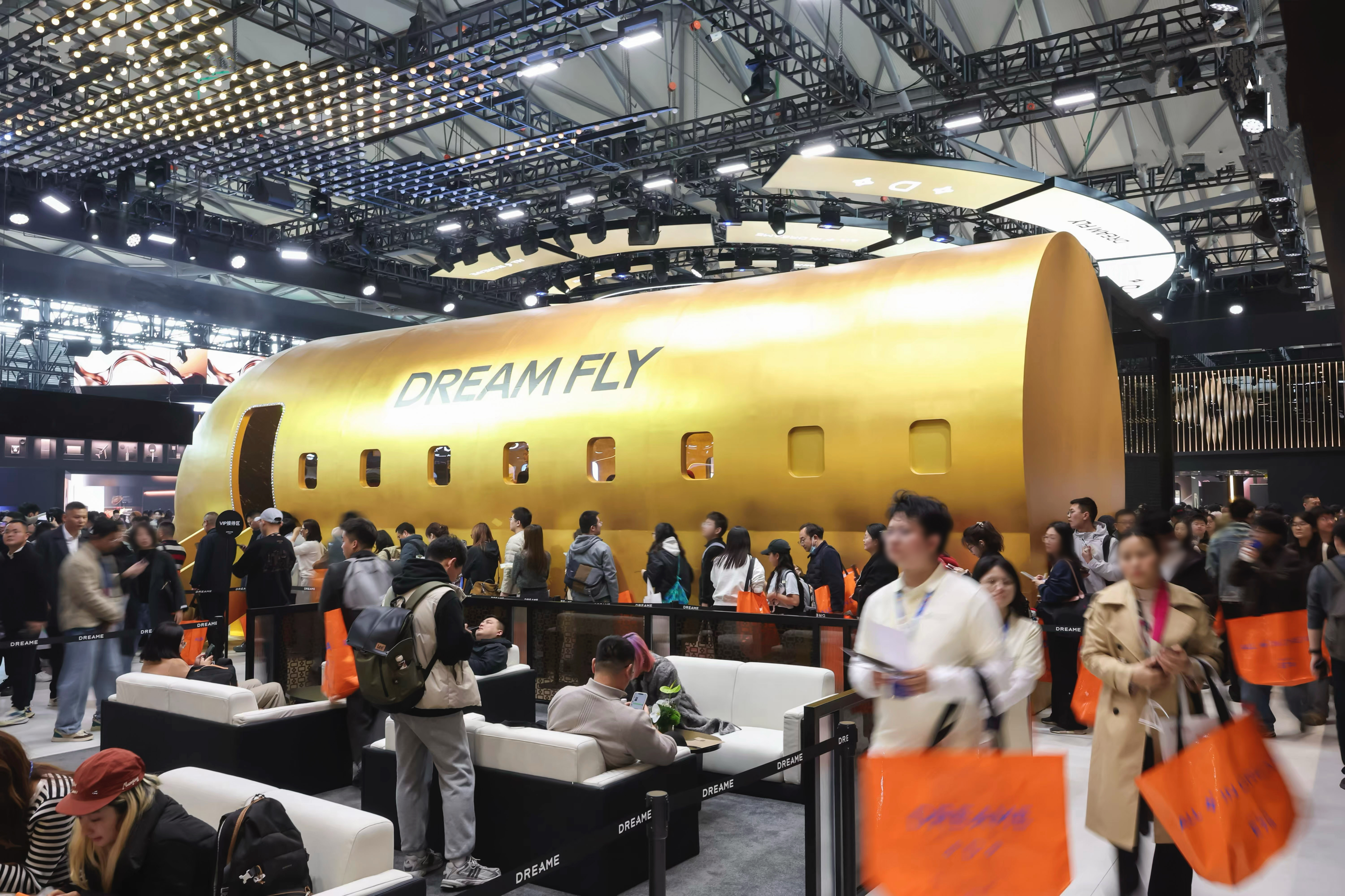 新华网上海3月14日电(许超)3月12日,中国家电及消费电子博览会(AWE 2026)在上海新国际博览中心拉开帷幕。现场,首次亮相展会的全新航空品牌——梦想航空(DREAM FLY)携一架“黄金客机”机身成为众人争相打卡的“人气王”,展区互动体验的“私人订制”登机牌,也成为许多观众手中的“打卡标配”。