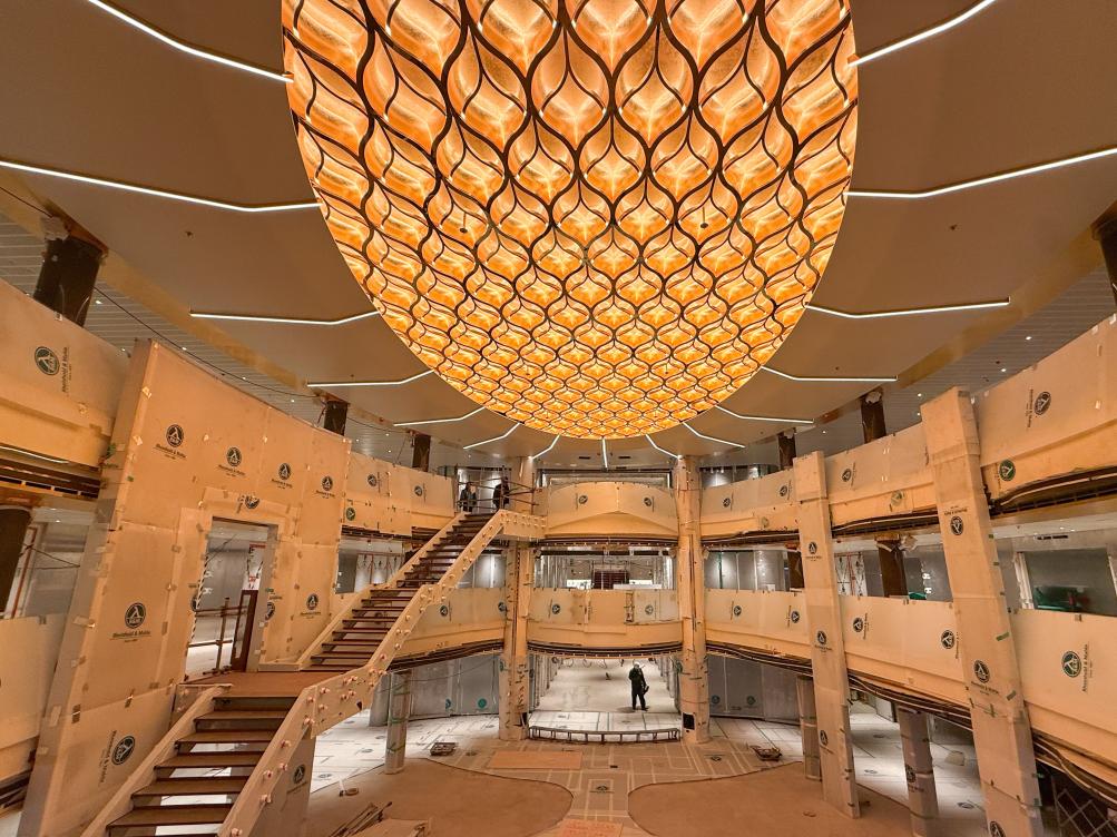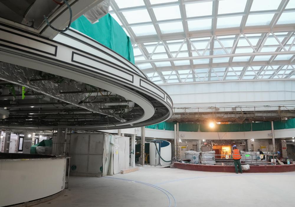 3月16日拍摄的第二艘国产大型邮轮“爱达·花城号”船舱内部,内装工程仍在进行中。