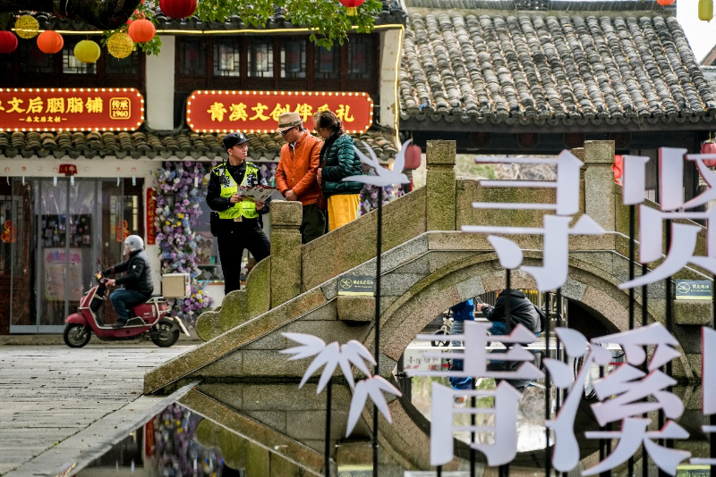 “公众号里的小程序能提前了解是否有停车位,现场还有民警引导、有共享游览车接驳,挺方便!”春分时节,来自市区的游客李女士带着家人前来游玩,对景区的交通保障赞不绝口。针对“爆发式”的车流高峰、客流密集等情形,派出所借鉴智慧治理理念,联合村“两委”制定《智慧停车管理实施方案》,实行错峰通行机制。同时,优化巡逻防控模式,推行“步巡+车巡+视频轮巡+高峰定点岗”相结合的立体化勤务,在网红打卡点、商户集中区等重点区域加密巡逻频次,让游客感受到“警察就在身边,平安就在眼前”。