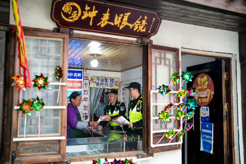 在宣传赋能上,借网红景点的年俗活动、媒体专题报道契机,传播公安服务举措与安全知识;联动入驻网络达人,将反诈、防盗、交通安全等内容融入短视频创作,让平安理念随文旅流量广泛传播。服务提质上,建立“一商户一联络”机制,对接辖区内50家商户定期上门开展安全检查;针对返乡创业青年集中的特点,民警主动走进青年创业门店,提供法治宣传、安全指导等服务,助力创业者防范经营风险。针对商户证照办理材料需求激增的实际,设立“文旅服务专窗”,推行“预约办、上门办、加急办”一站式服务,以多元共治举措激活平安建设“内生力”。