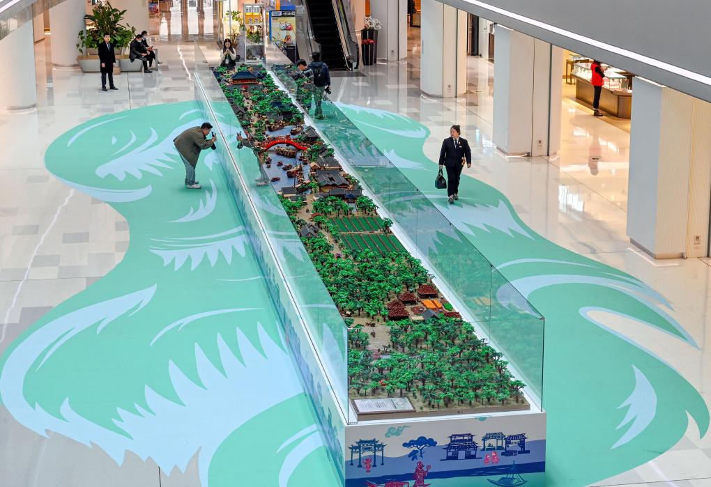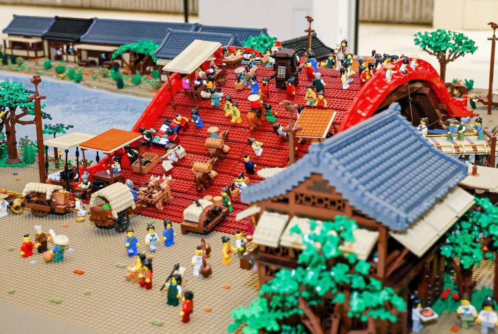 核心展品是由乐高专业认证大师洪子健创作的,全长26.5米、宽1.8米的乐高实景装置《清明上河图》。据介绍,这件作品运用了大约300万块积木零件,耗时约一年完成。