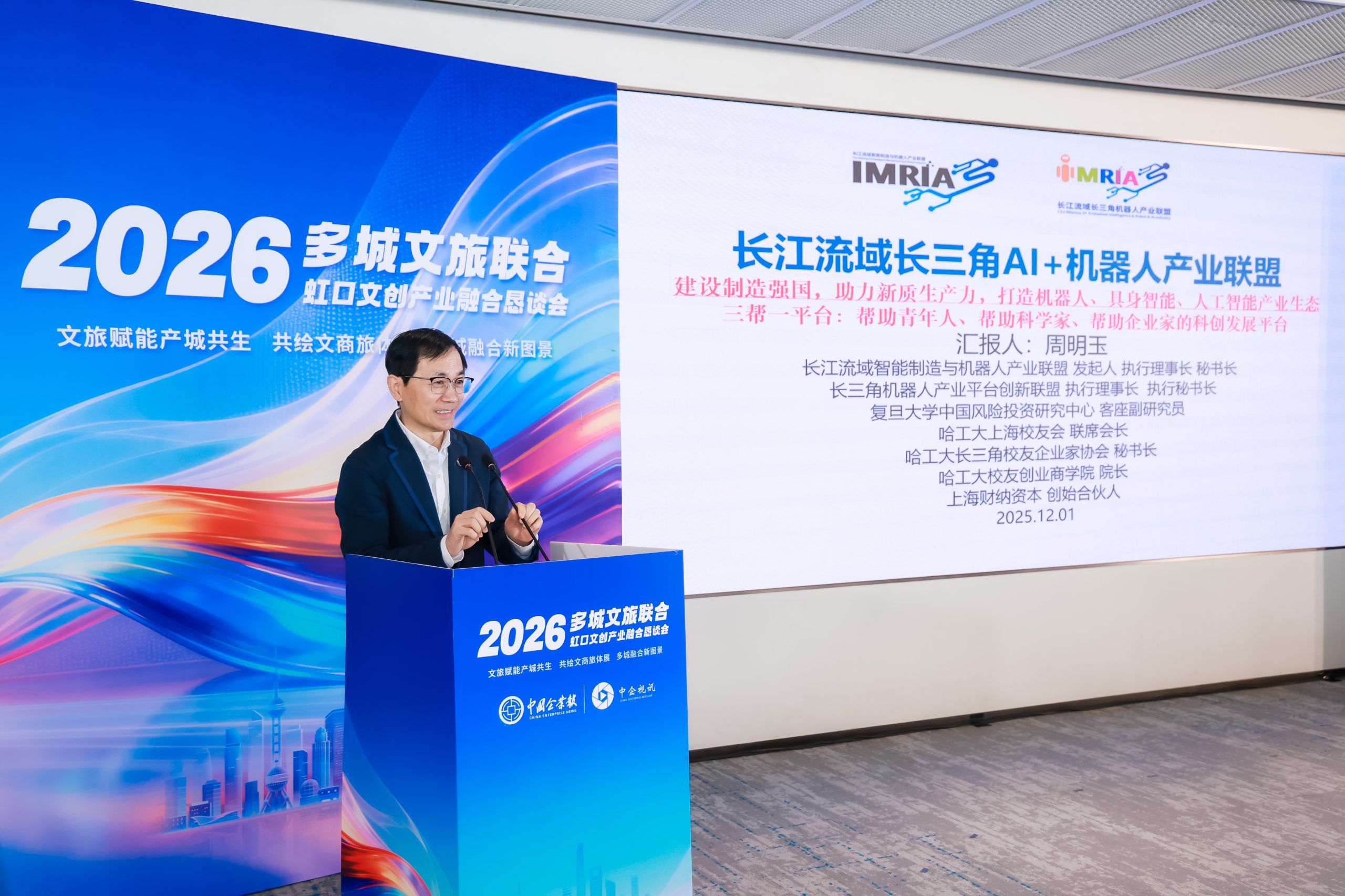 3月20日上午,2026多城文旅联合·虹口文创产业融合恳谈会分论坛“科技焕新——文旅与产业创新实践”在上海虹口北外滩举行。本次大会由中国企业报中企视讯主办,上海市虹口区文化和旅游局、虹口区文化创意产业发展促进会指导,上海市虹口区文化和旅游协会、上海文旅产业研究院、中企产经研究院协办,分论坛聚焦科技赋能文旅产业转型升级,汇聚人工智能、机器人、数字文化、非遗传承等领域的行业专家与创新企业代表,共探科技与文旅深度融合的新路径。