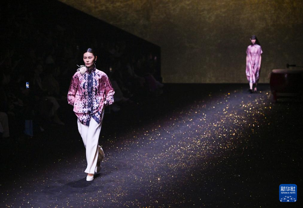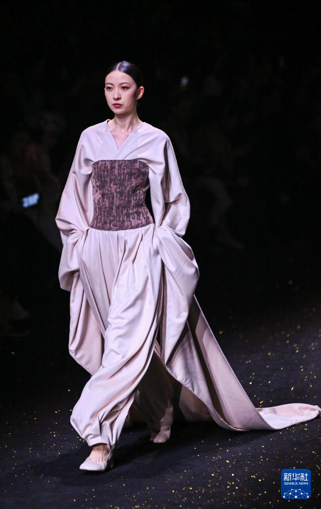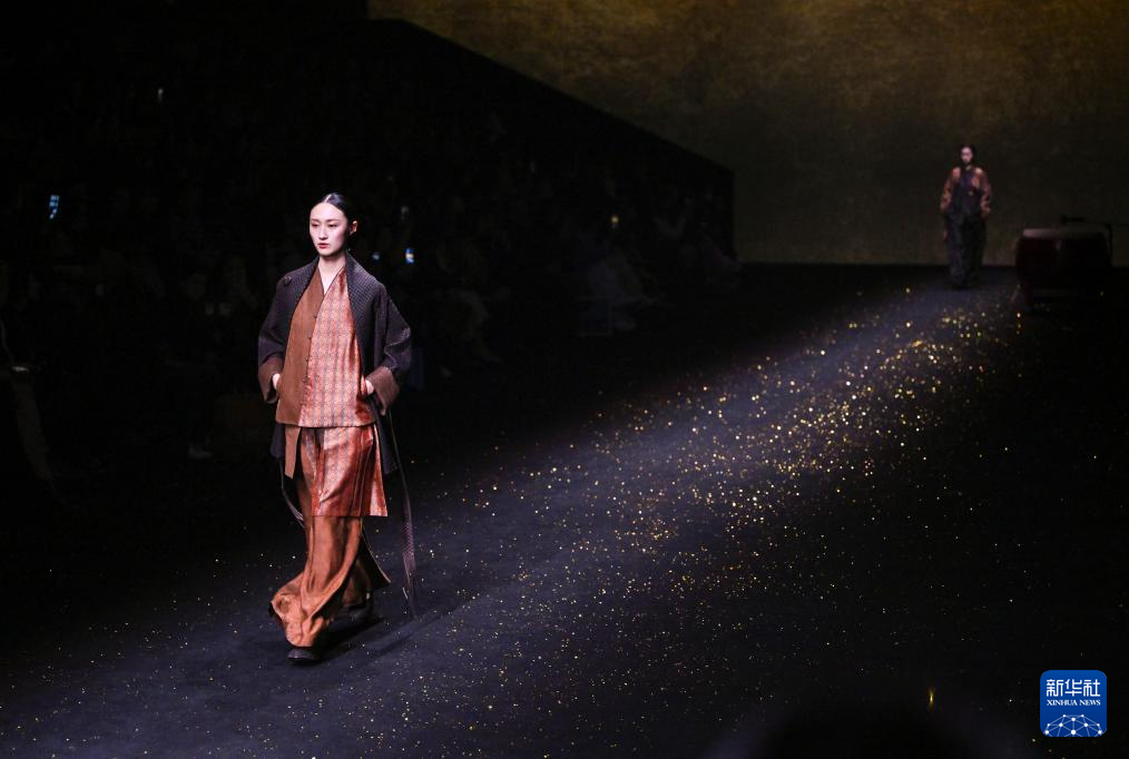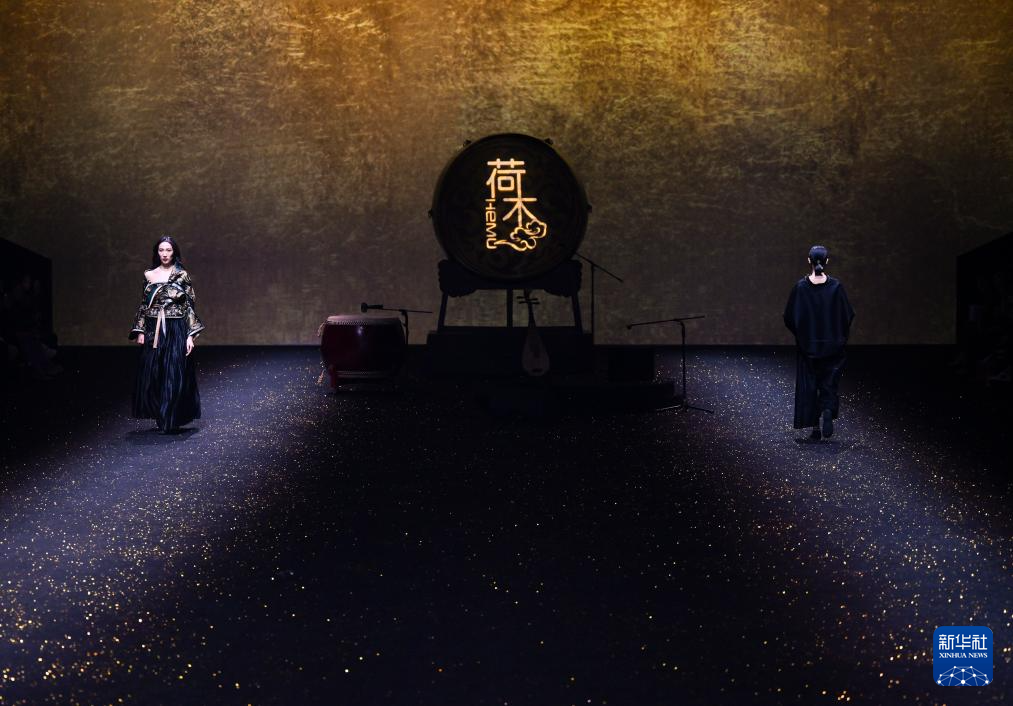 3月26日,模特在荷木HEMU“楚歌”新品发布秀上展示服装。