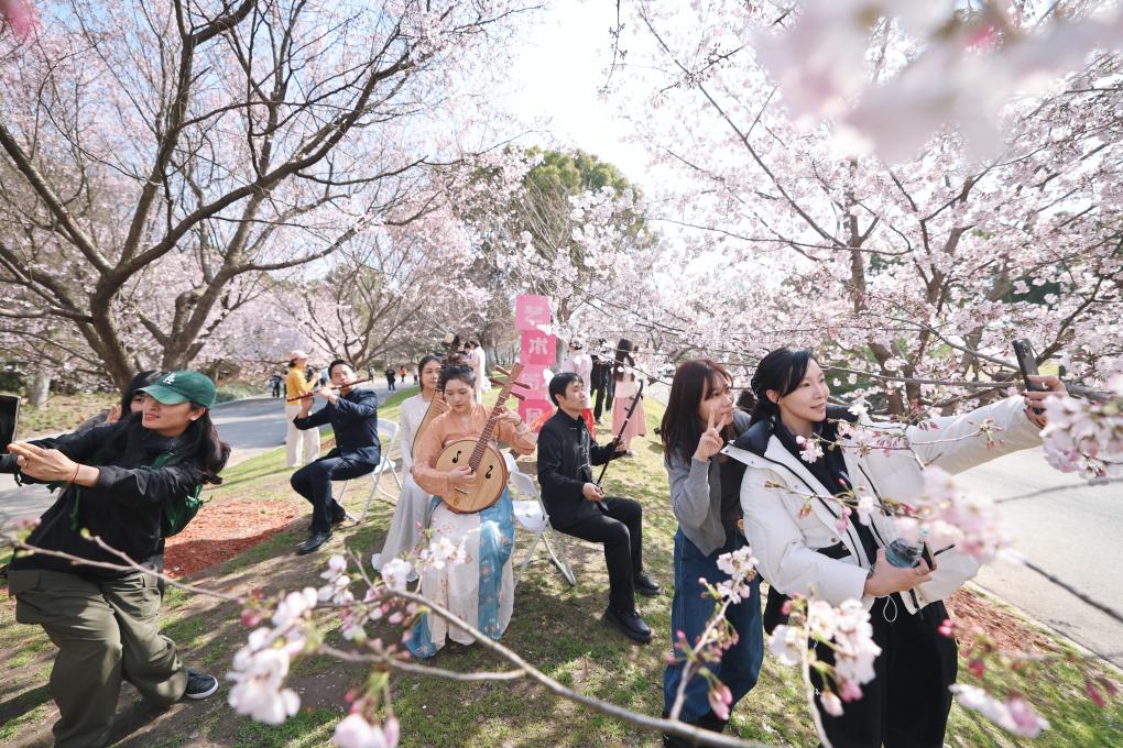 宝山的顾村公园,每逢樱花盛放时节都是城中最热打卡地。当日,浪漫的樱花变成“城市美育日”的最佳背景,一系列精彩纷呈的美育活动围绕“樱花雅韵”展开。