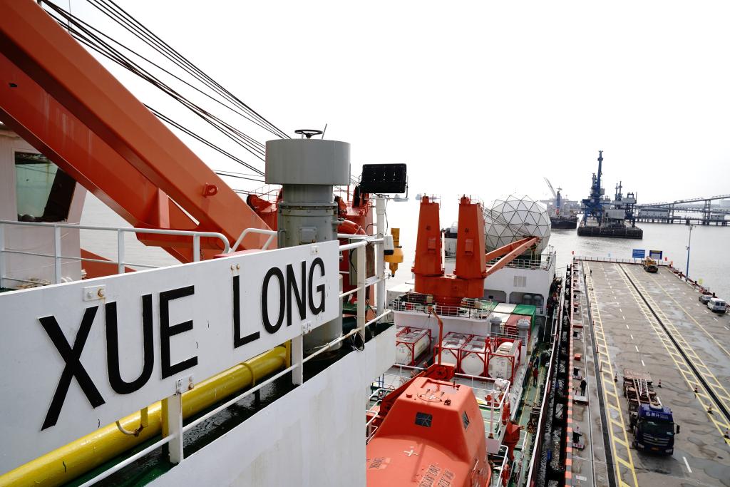 4月9日,“雪龙”号停靠在中国极地考察国内基地码头。