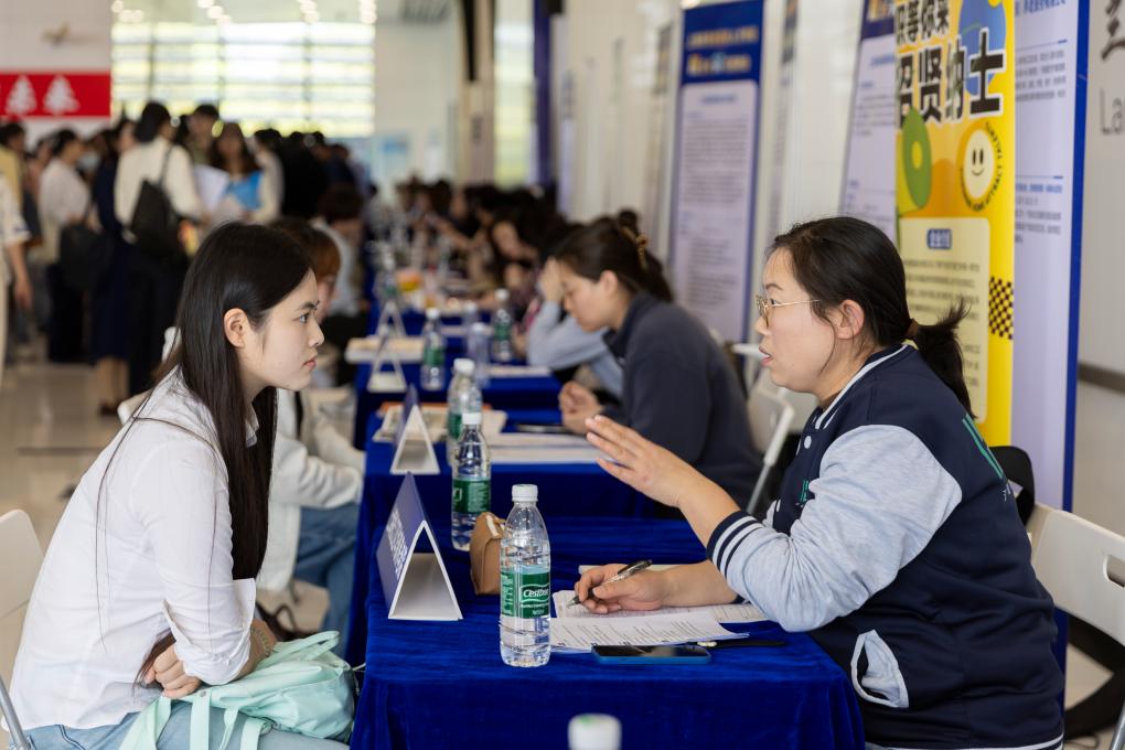 4月9日拍摄的上海市养老服务人才专场就业与实习招聘会。