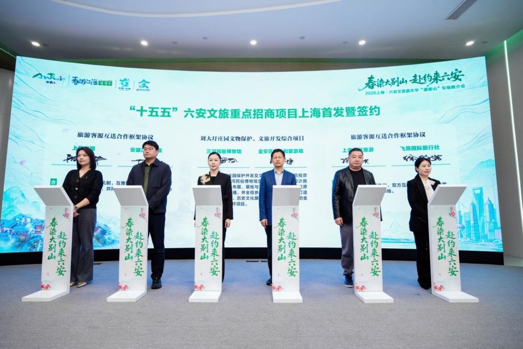 坚持“项目为王”,是六安文旅高质量发展的核心路径,也是沪六对口合作的关键抓手。活动上,“十五五”六安文旅重点招商项目上海首发,三河民俗博物馆、金安区文旅局,上海航空假期、安徽迎驾国旅,上海春秋旅游、安徽飞燕国际旅行社,分别就刘大圩庄园文物保护、文旅开发综合、旅游客源互送项目签署战略合作协议,成为沪六两地文旅在资源开发、市场共拓、品牌共建、产业共兴上的又一重要突破,标志着两地合作从活动引流向产业深耕全面升级。