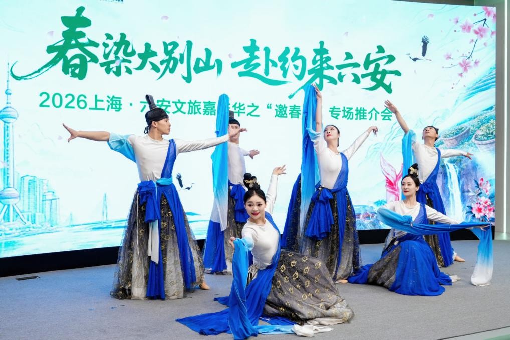 活动在舞蹈《红绿六安·今春如画》中拉开帷幕。现场,六安市围绕“红绿交融文旅康养基地”建设,正式发布“春染大别山,赴约来六安”精品线路暨“十五五”文旅融合消费场景,推出4条春季精品线路,串联起生态观光、红色研学、康养休闲、非遗体验等多元业态。从老街烟火到沉浸式演艺,从低空飞行到温泉康养,从茶旅体验到寻趣山水,诚邀上海市民把六安当作周末度假、亲子研学、康养休闲的“首选后花园”。